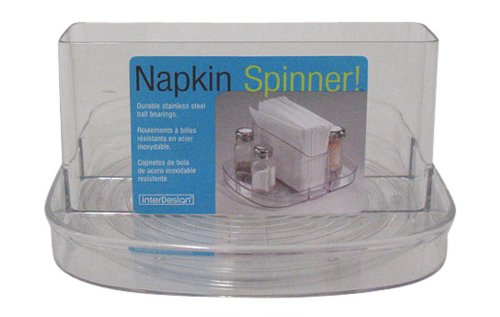 InterDesign Linus Napkin Spinner, Clear Great for use in kitchen, pantry, office, utility room, hobby/craft room and more.Ribbing detail prevents sliding.Made of sturdy clear resipreme plastic.Contents easy to access and see.Great for the pantry or tabletop. Lazy susans are a great way to store, organize and serve a wide variety of kitchen supplies. Keep your dining necessities handy in our attractive, clear napkin spinner by InterDesign. The center section provides a handy spot for all your napkins and the base tray is perfect for storing needed dinner accompaniments such as salt and pepper shakers, salad toppers and more. Conveniently spins so you and your guests don't have to reach over anyone or anything to gain access. And then get cheap price. More Detail